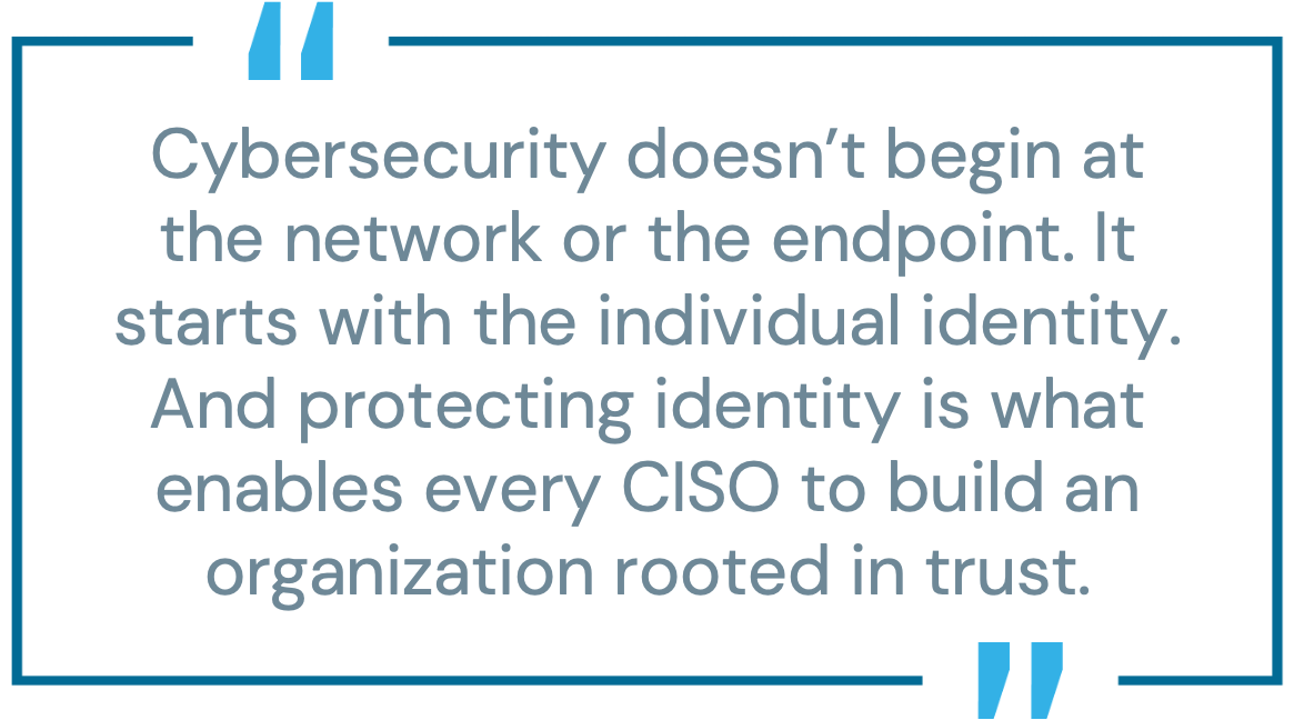 Cybersecurity doesn’t begin at the network or the endpoint. It starts with the individual identity. And protecting identity is what enables every CISO to build an organization rooted in trust.